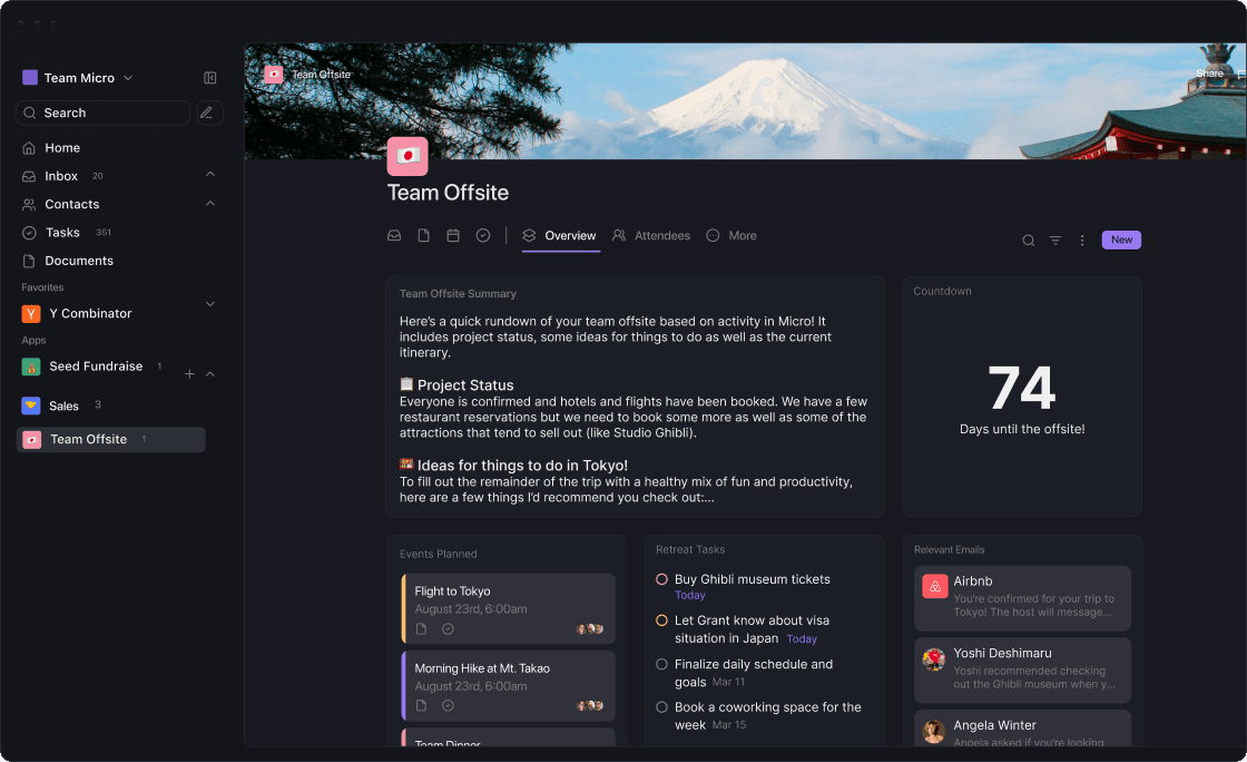 Micro is an all-in-one tool for email, CRM, project management and more that automatically organizes itself.